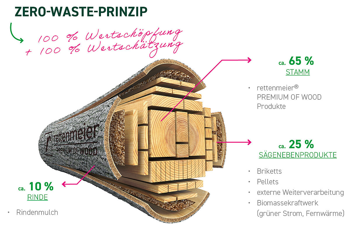 In anderen Worten: Unser Rohstoff Holz wird zu 100 % verwertet.